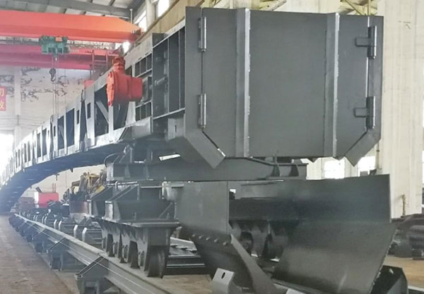 帶式轉(zhuǎn)載機(jī)的組成:由機(jī)頭、機(jī)身、機(jī)尾、支撐小車等部分組成。1.機(jī)頭部:由機(jī)頭架、受料斗、連接部、清掃器、改向滾筒及上下托輥組成。2.機(jī)身部分:由前端機(jī)身和中部機(jī)身組成,前端機(jī)身由機(jī)架、上下托輥組成;中部機(jī)身…